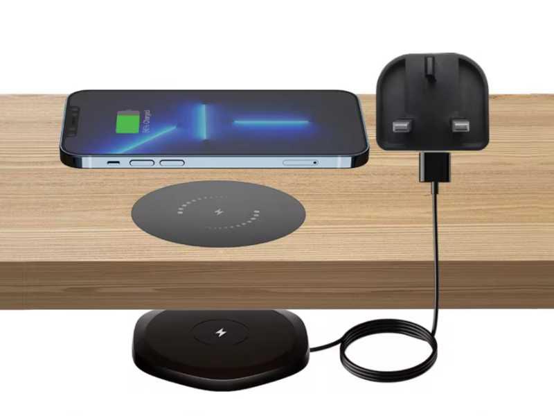 Unlike bulky charging pads, this charger hides under your desk, keeping your workspace clean.